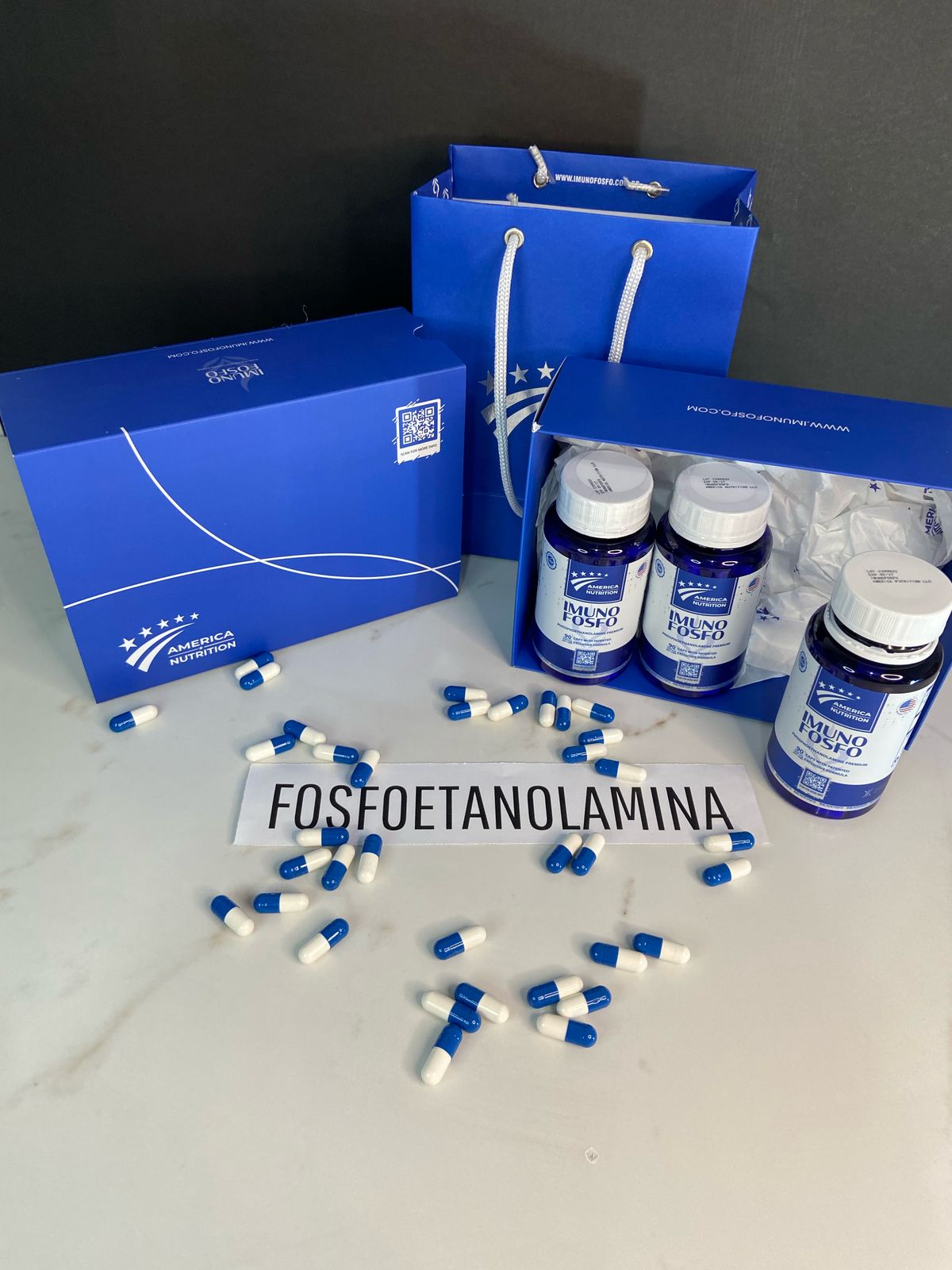 ImunoFosfo es un suplemento dietético formulado con fosfoetanolamina sintética, una sustancia ampliamente estudiada por sus propiedades inmunomoduladoras. Contiene 90 cápsulas de 650 mg cada una y fue desarrollado para favorecer la salud y el bienestar general.